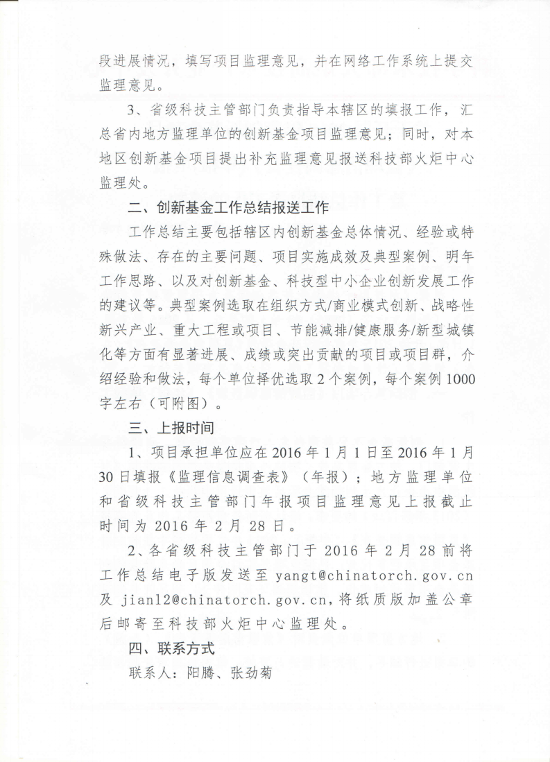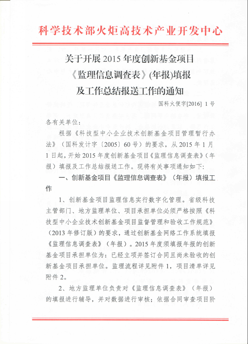 关于开展2015年度创新基金项目《监理信息调查表》(年报)填报及工作总结报送工作的通知