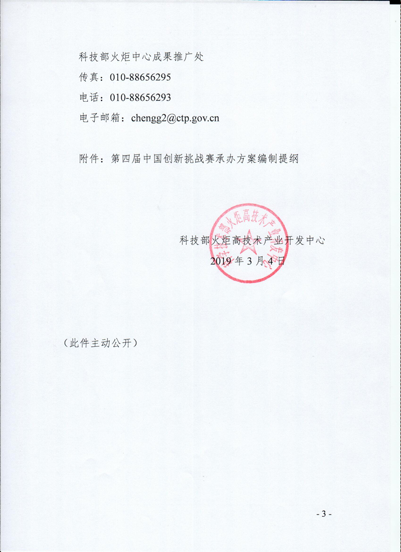 科技部火炬中心关于开展第四届中国创新挑战赛相关工作的通知