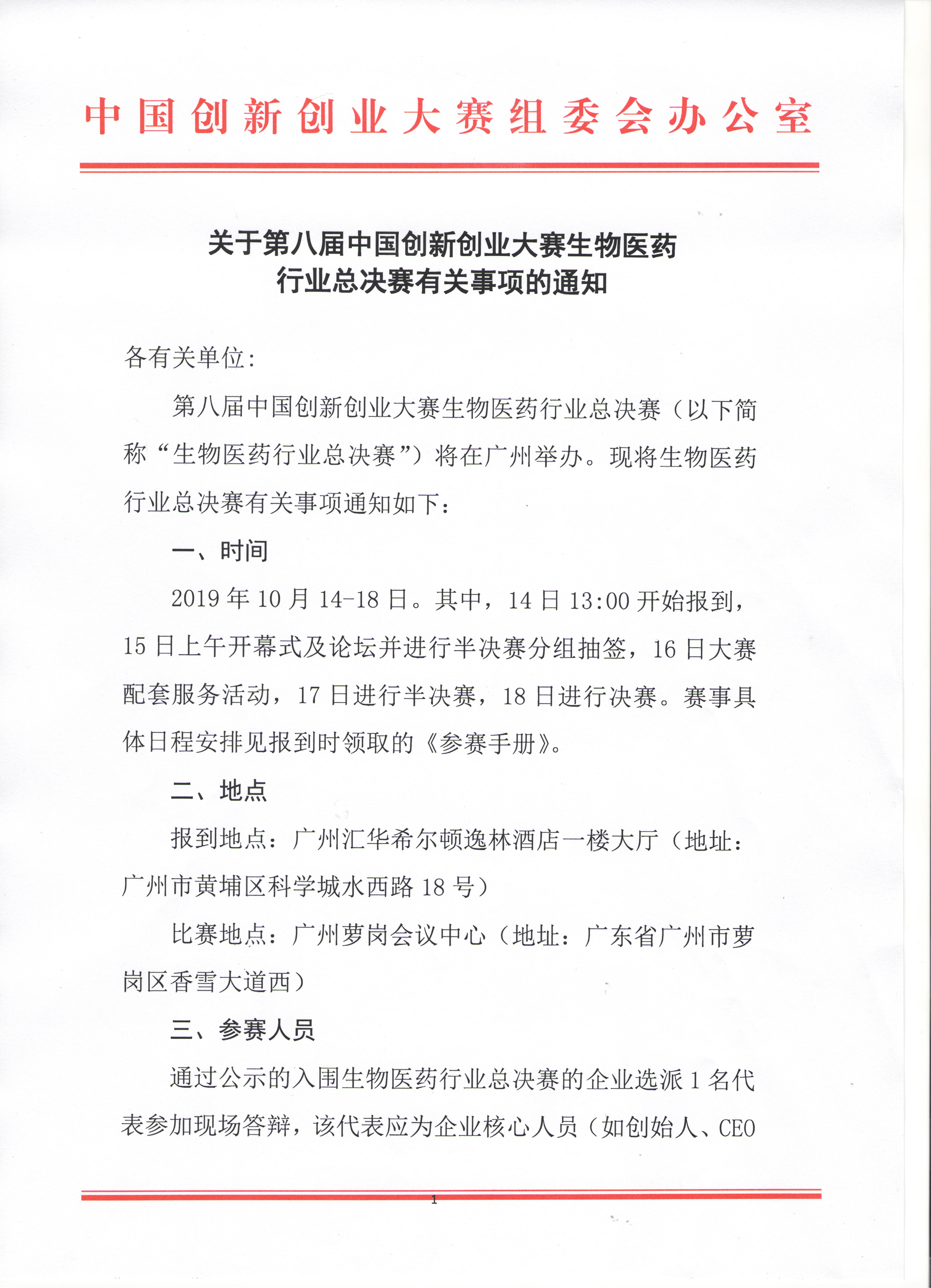 2019第八届中国创新创业大赛全国总决赛即将举行