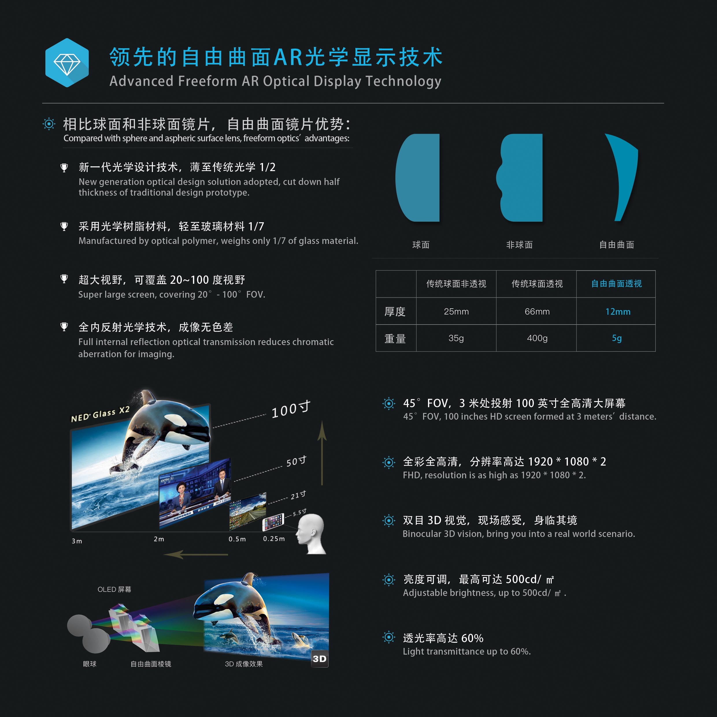 参赛项目:基于自主开发的光学自由曲面超轻型大视场穿透式AR 智能眼镜