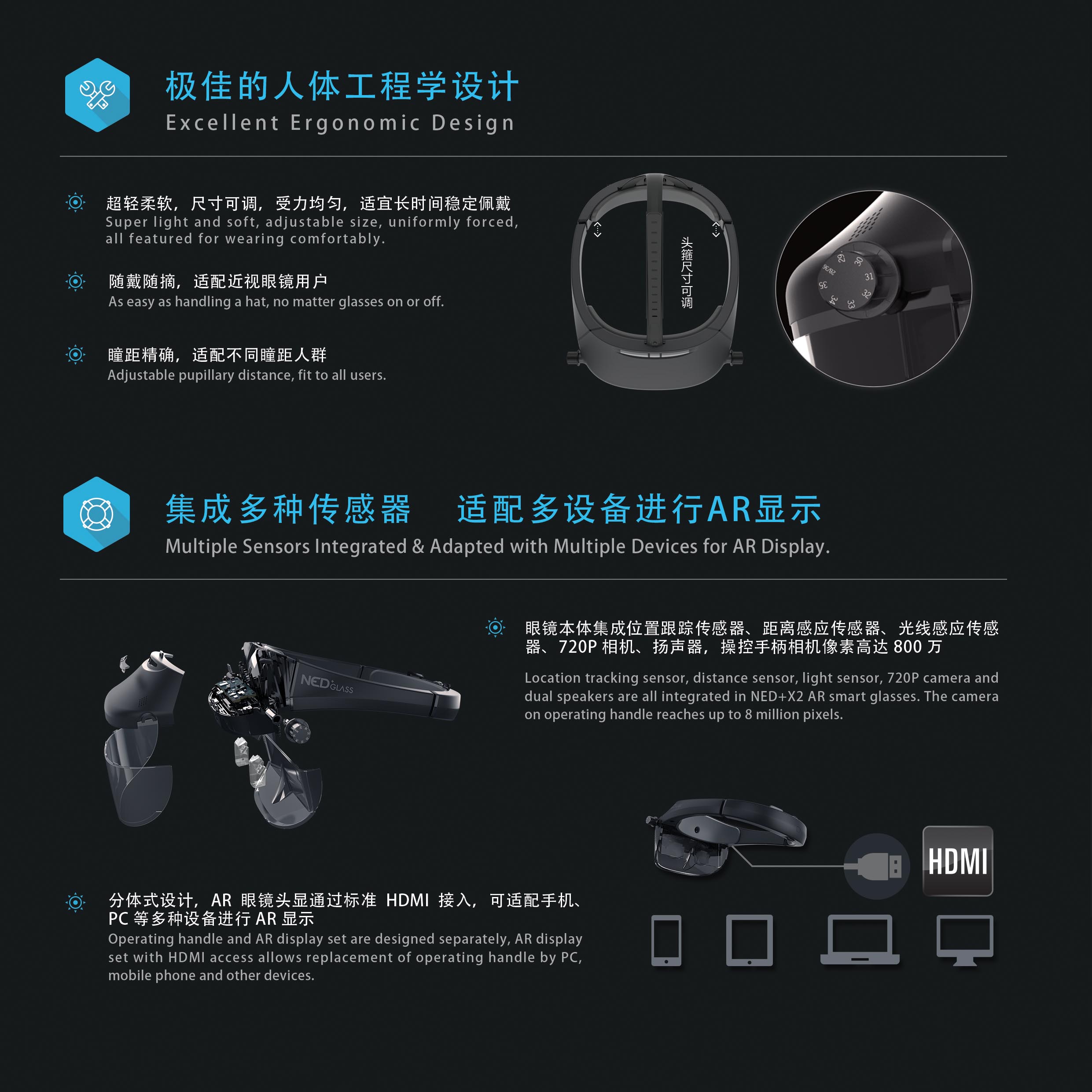 公司研发团队拥有十余年增强显示及虚拟显示的设计研发及生产基础,是国内探索AR技术的先行者,在增强现实智能眼镜光学模组设计研发方面有数十项专利及国际一流研究论文,并有多项美国专利,掌握核心关键技术,产品性能指标已达到或超过美国、日本等高科技公司相关产品,跻身国际一流增强现实光学模组供应商领域,已为国内多家增强现实智能眼镜公司提供光学模组。