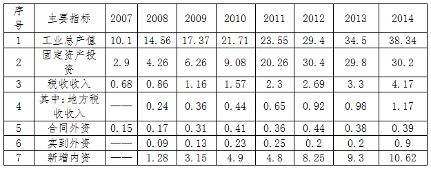 2014年,园区共累计实现固定资产投资30.21亿元,完成年计划的101%;其中先进制造业项目投资完成5.72亿元,完成年度计划的104%;合同外资0.39亿美元,完成年计划的103.27%;税收收入4.17亿元,完成年计划的108%,其中地方财政收入1.17亿元,完成年计划的101%;实现内资注册资本约10.62亿元,完成年计划的118%。详细数据见下表。