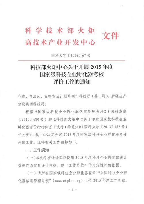 科技部火炬中心关于开展2015年度国家级科技企业孵化器考核评价工作的通知