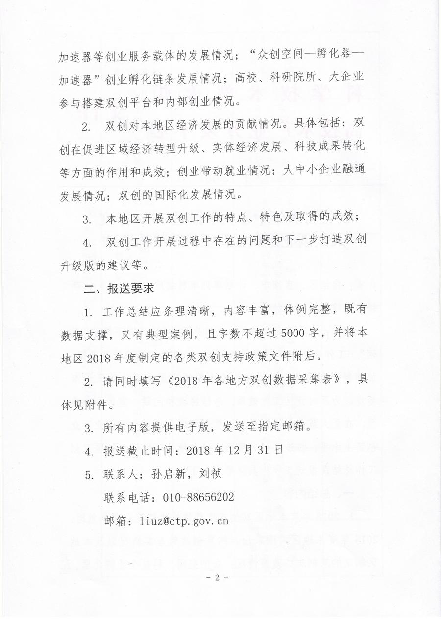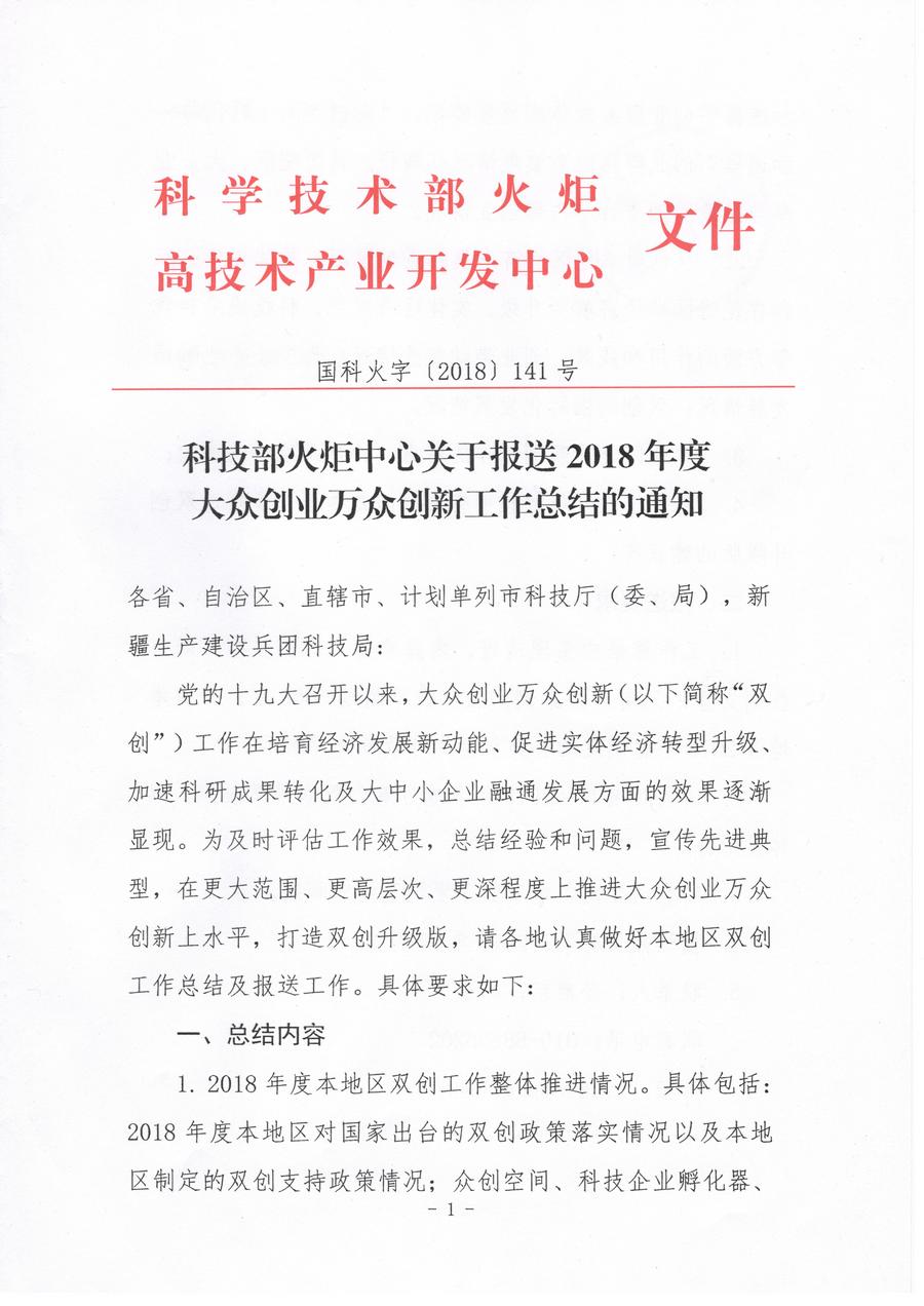 科技部火炬中心关于报送2018年度大众创业万众创新工作总结的通知