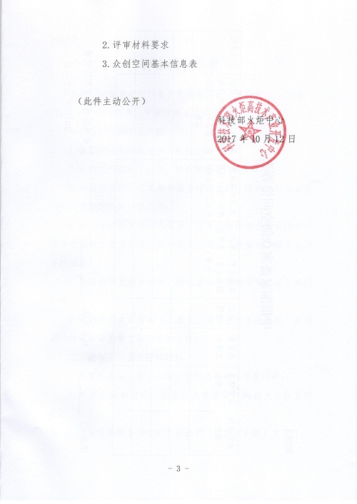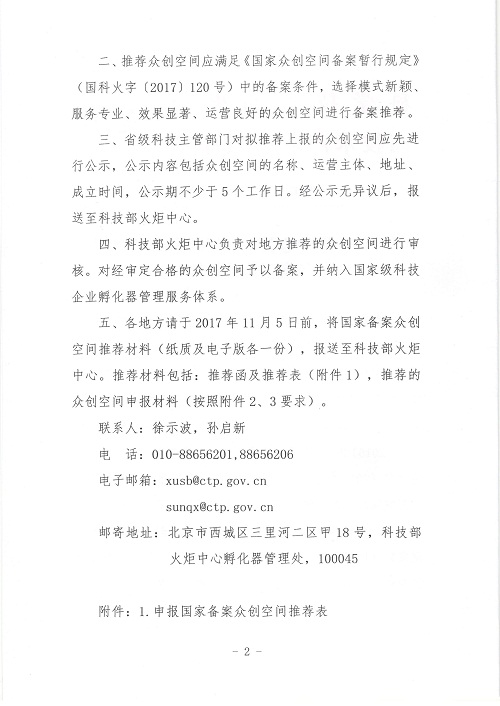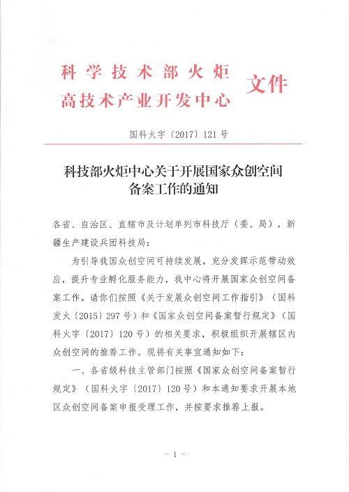 科技部火炬中心关于开展国家众创空间备案工作的通知