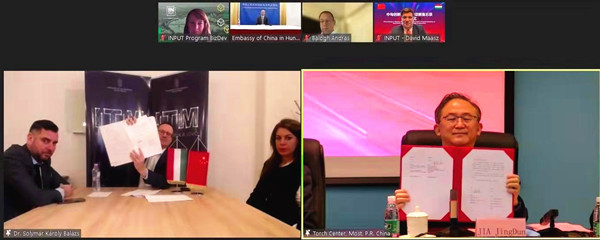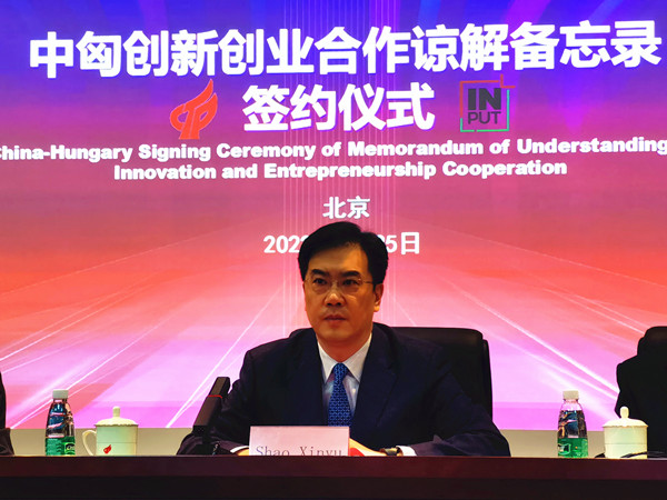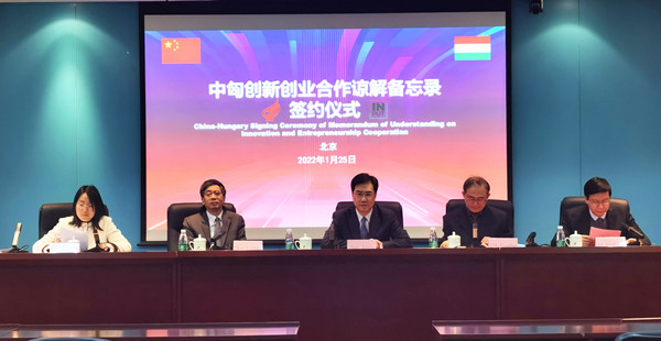 为加强中匈全面战略伙伴关系,落实中匈科技合作委员会会议精神,拓展双方科技创新合作领域,2022年1月25日,科技部火炬中心与匈牙利创新与技术部“投入计划”指导委员会创新创业合作谅解备忘录签约仪式以视频会议方式举行。科技部副部长邵新宇见证签约并致辞。科技部火炬中心主任贾敬敦、匈牙利创新与技术部副国务秘书兼“投入计划”指导委员会主任卡罗利·巴尔拉斯·索利马代表双方签约。科技部国际合作司副司长陈霖豪、匈牙利“投入计划”指导委员会及两国使馆相关人员等参加会议,科技部火炬中心副主任李有平主持签约仪式。