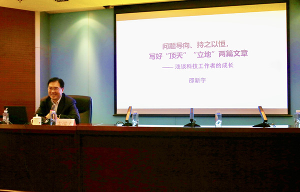 3月11日,火炬学社青年理论学习小组举行“火炬讲堂”2022年首场专题学习会,邀请科技部党组成员、副部长、中国工程院院士邵新宇为青年干部作专题报告。邵新宇副部长以“问题导向、持之以恒,写好‘顶天’‘立地’两篇文章——浅谈科技工作者的成长”为题,为来自成果与区域司、农村司、火炬中心、农村中心、风险中心的近百名青年干部分享了他的科技工作经历。火炬中心主任贾敬敦参加学习并致欢迎词。