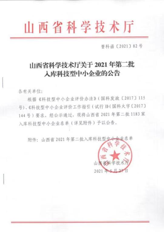 山西省2021年第2批入库科技型中小企业名单公告正文.jpg PICTURE