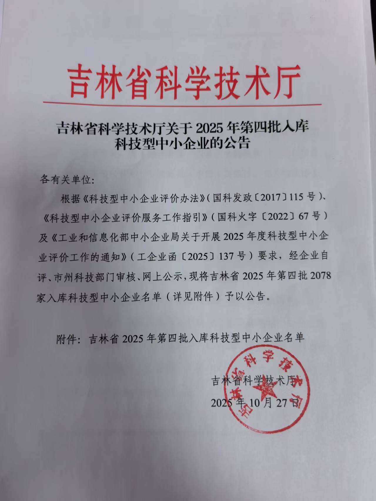 吉林省2025年第4批入库科技型中小企业名单公告正文.jpg PICTURE