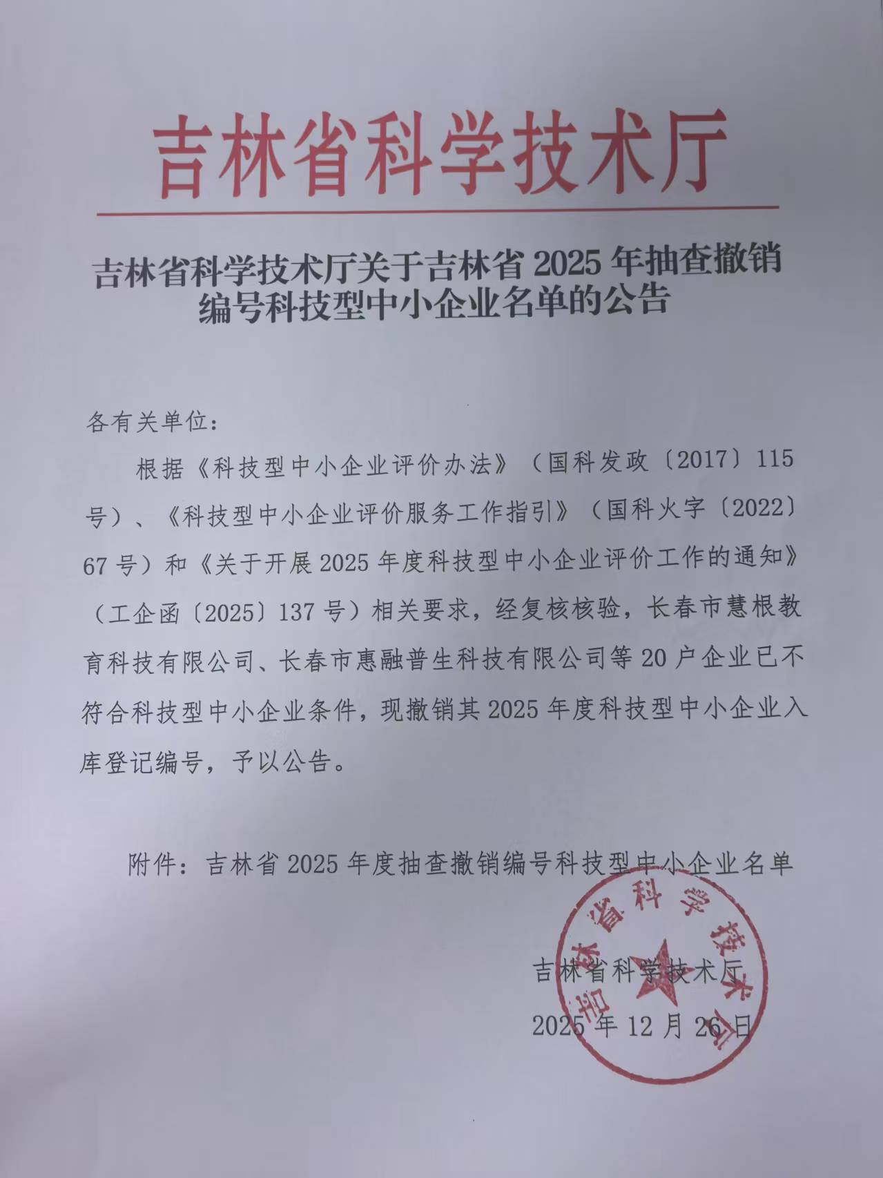 吉林省2025年第2批撤销编号科技型中小企业名单.pdf FILE