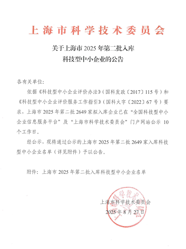 上海市2025年第2批入库科技型中小企业名单公告正文.jpg PICTURE