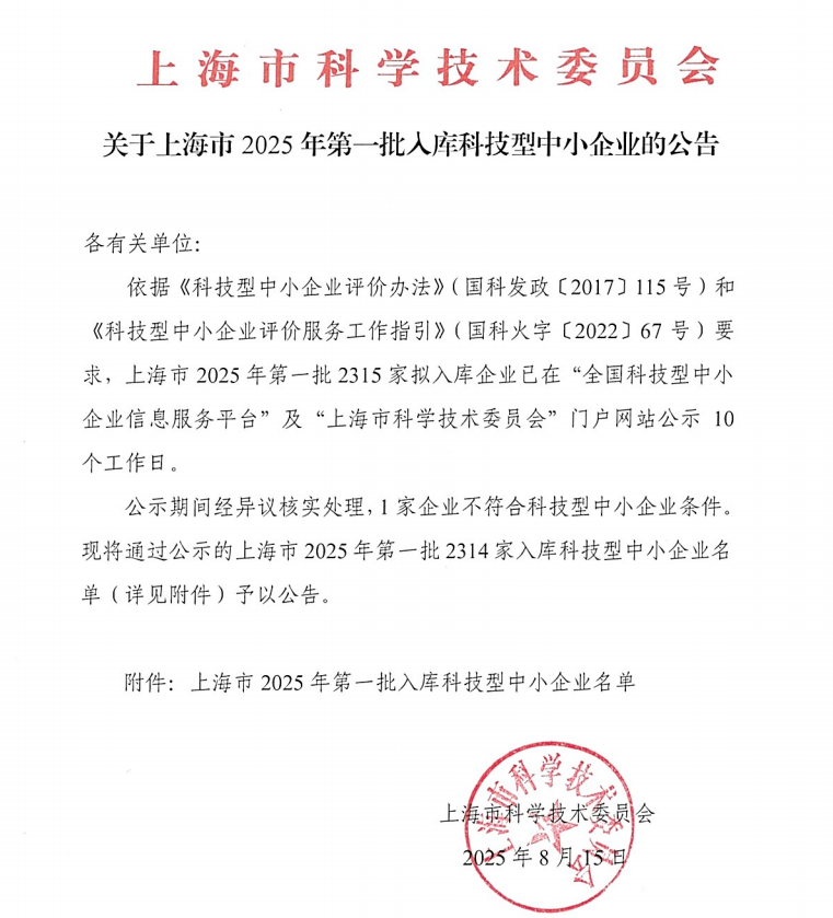 上海市2025年第1批入库科技型中小企业名单公告正文.jpg PICTURE