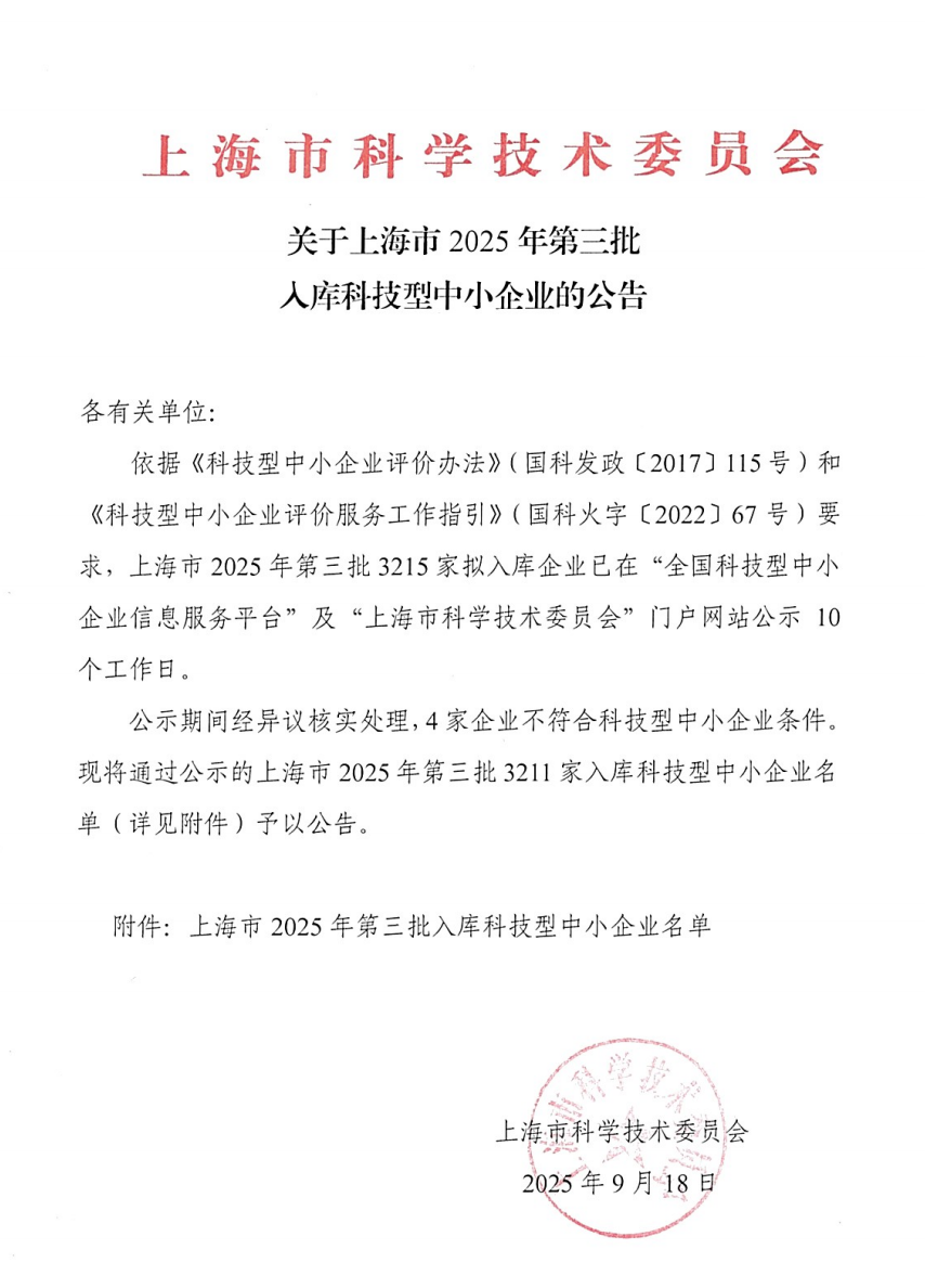 上海市2025年第3批入库科技型中小企业名单公告正文.jpg PICTURE