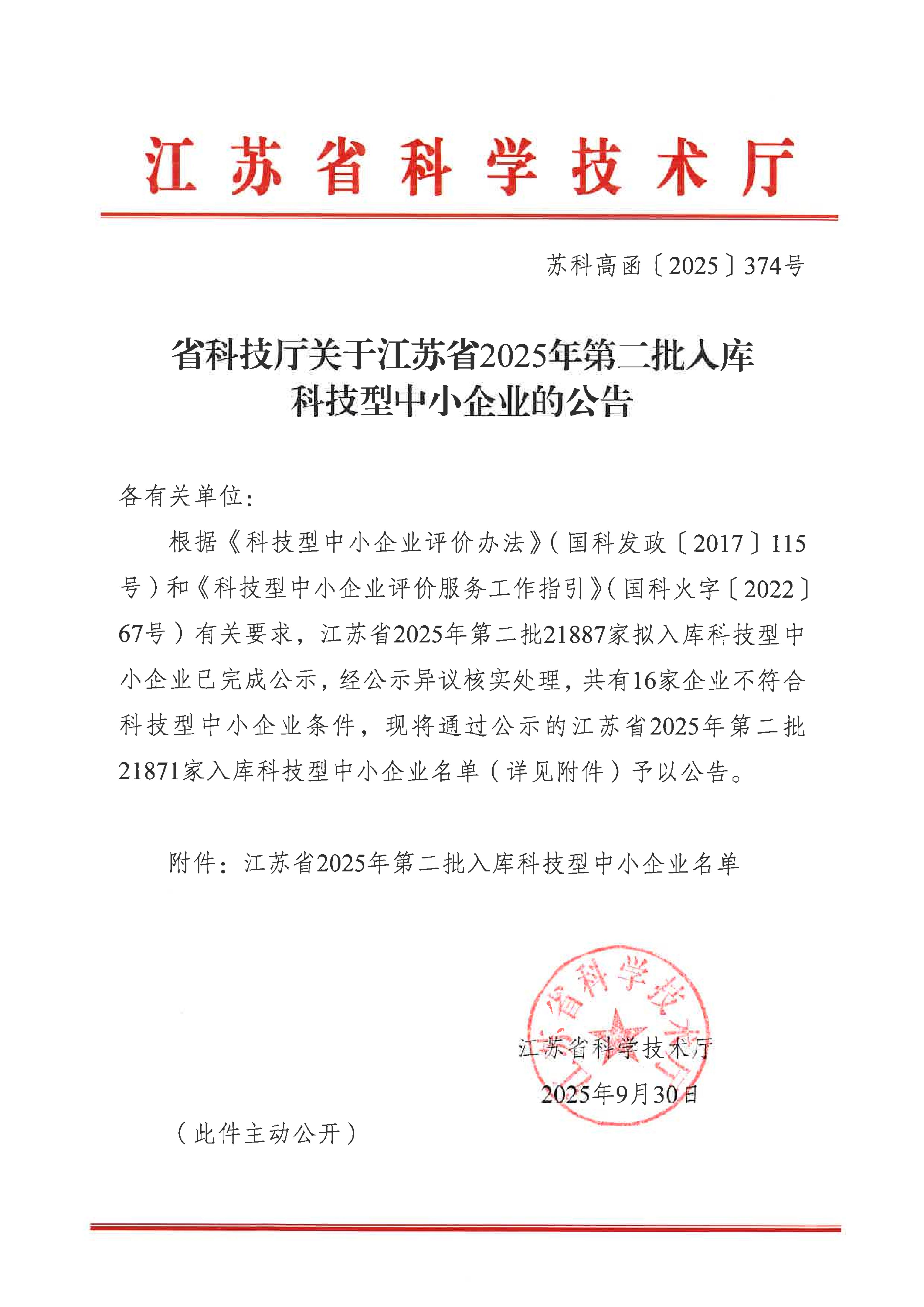 江苏省2025年第2批入库科技型中小企业名单公告正文.jpg PICTURE