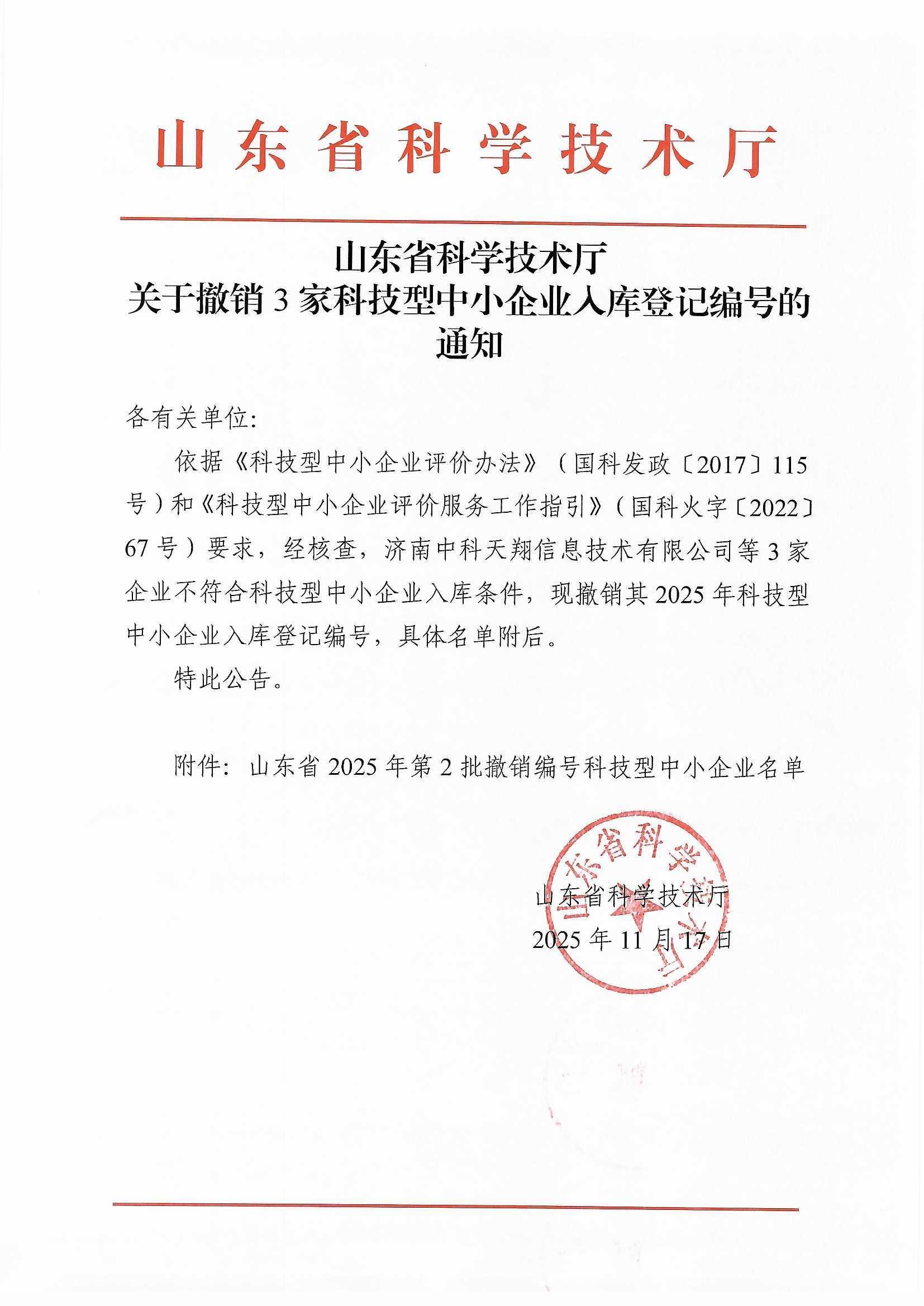 关于撤销3家科技型中小企业入库登记编号的通知_页面_1.jpg PICTURE