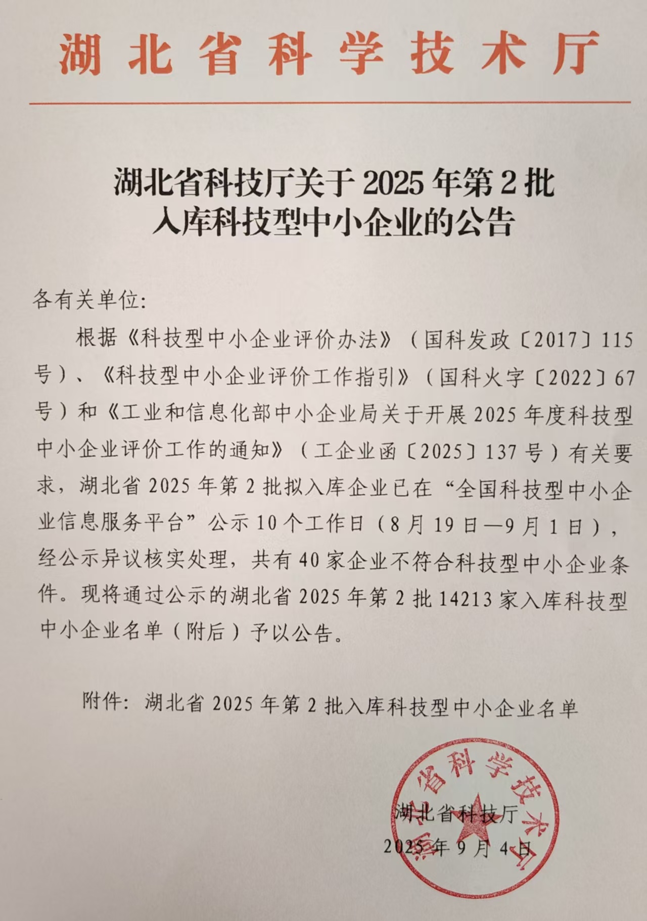 湖北省2025年第2批拟入库科技型中小企业名单公告正文.jpg PICTURE