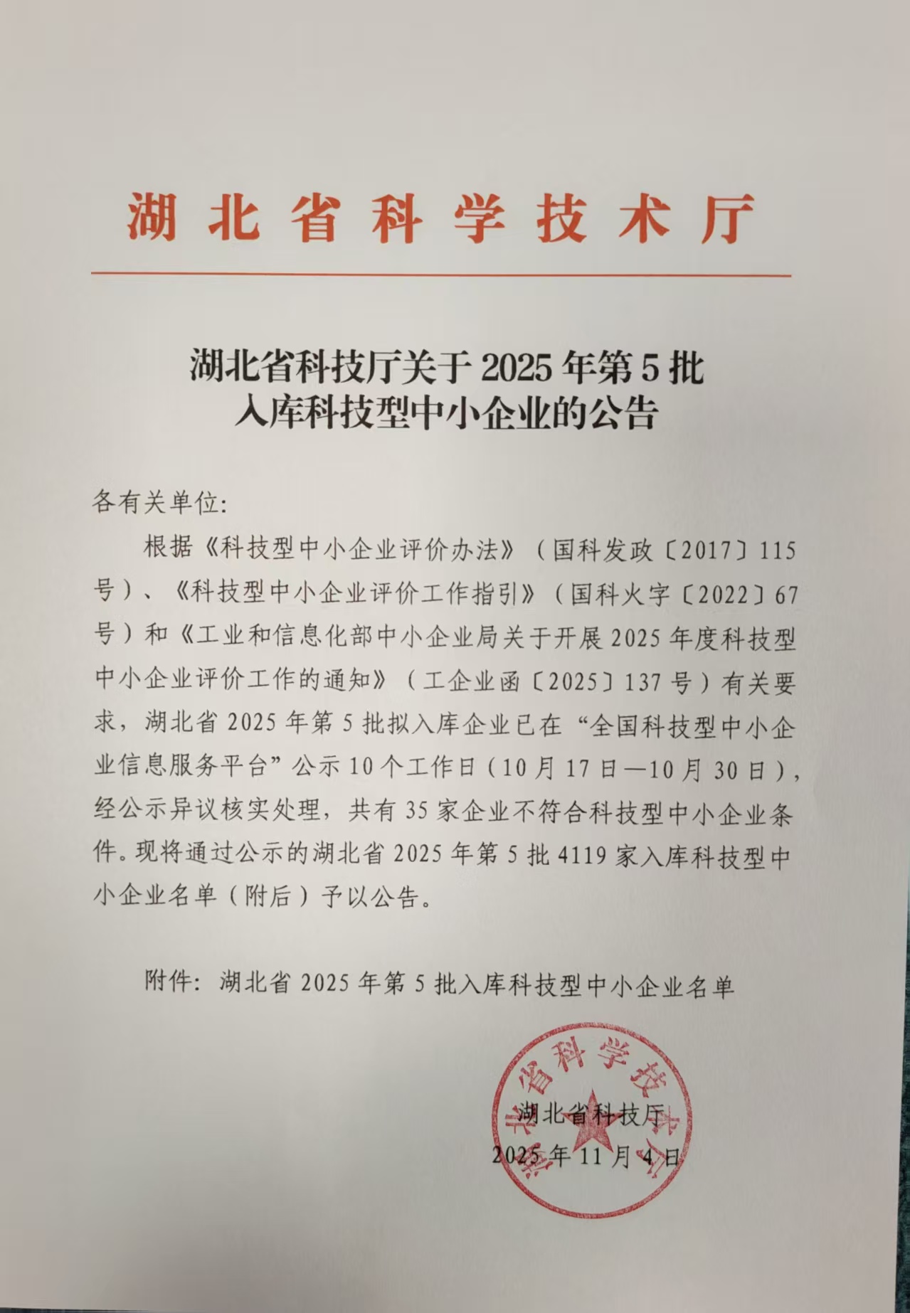 湖北省2025年第5批入库科技型中小企业名单公告正文.jpg PICTURE