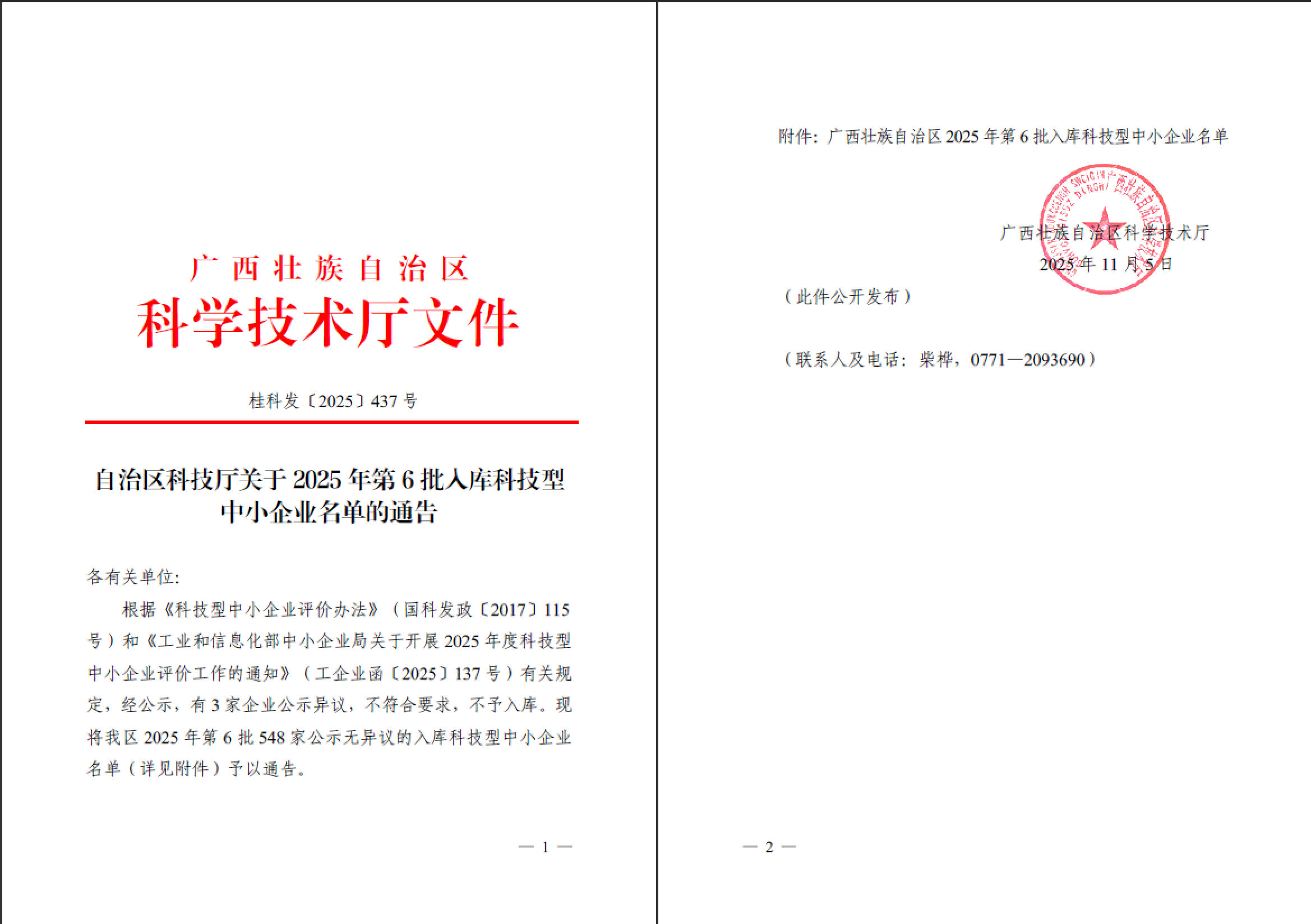 广西壮族自治区2025年第6批入库科技型中小企业名单公告正文.jpg PICTURE