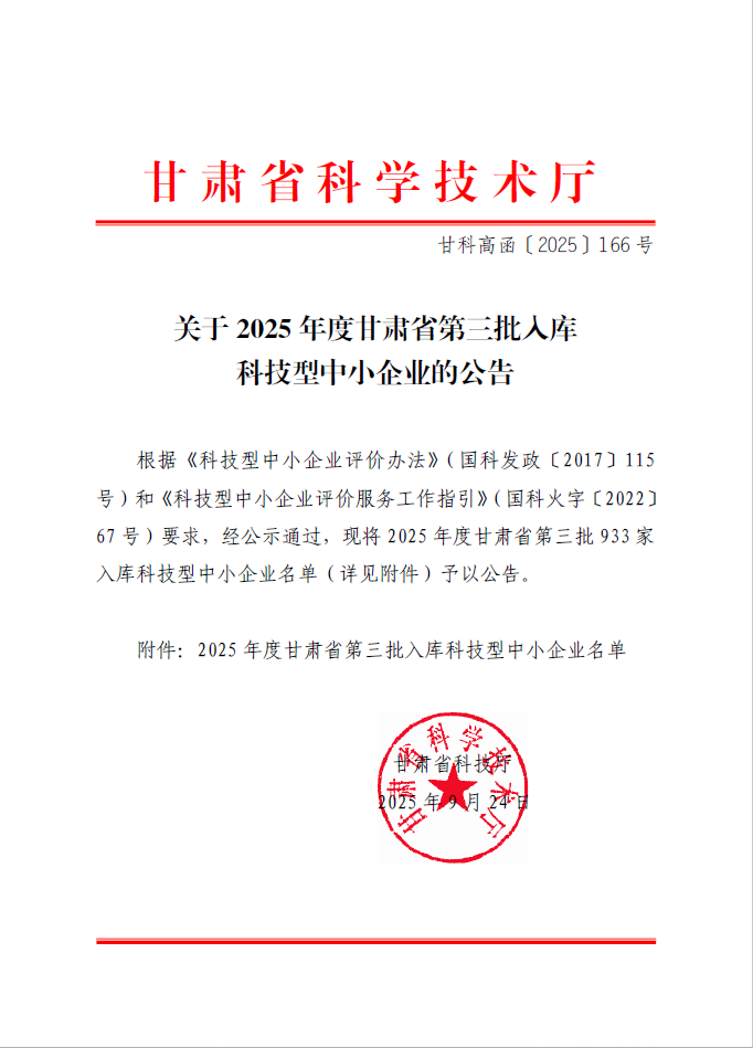 甘肃省2025年第3批入库科技型中小企业名单公告正文.jpg PICTURE