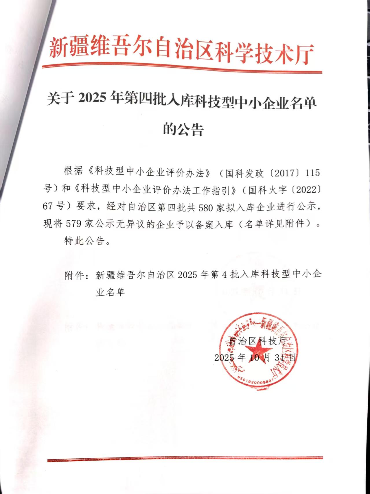 新疆维吾尔自治区2025年第4批入库科技型中小企业名单公告正文.jpg PICTURE