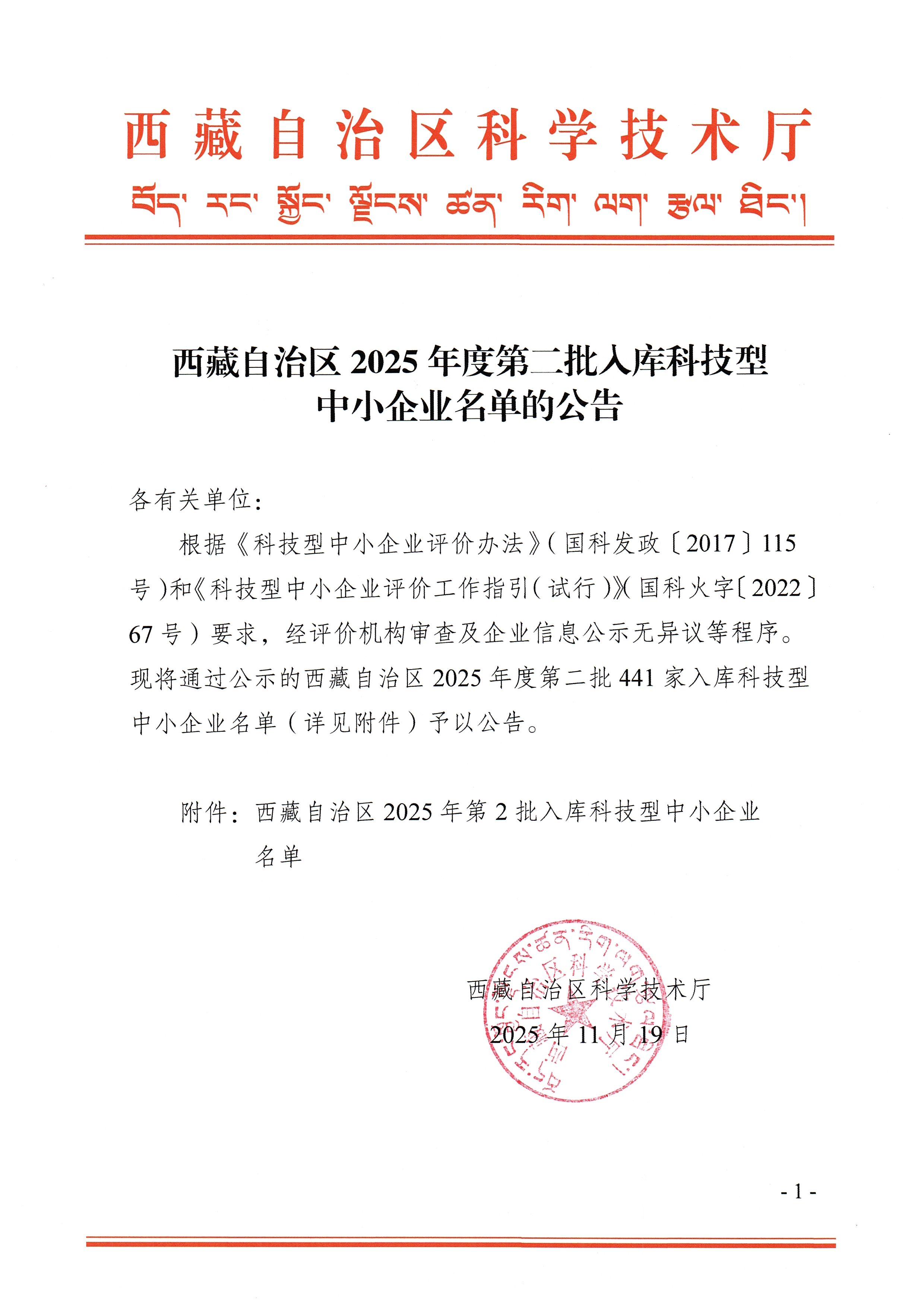 西藏自治区2025年第2批入库科技型中小企业名单公告正文.jpg PICTURE