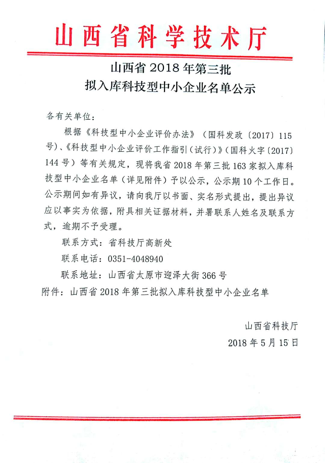 山西省2018年第三批拟入库科技型中小企业名单公示正文.jpg PICTURE