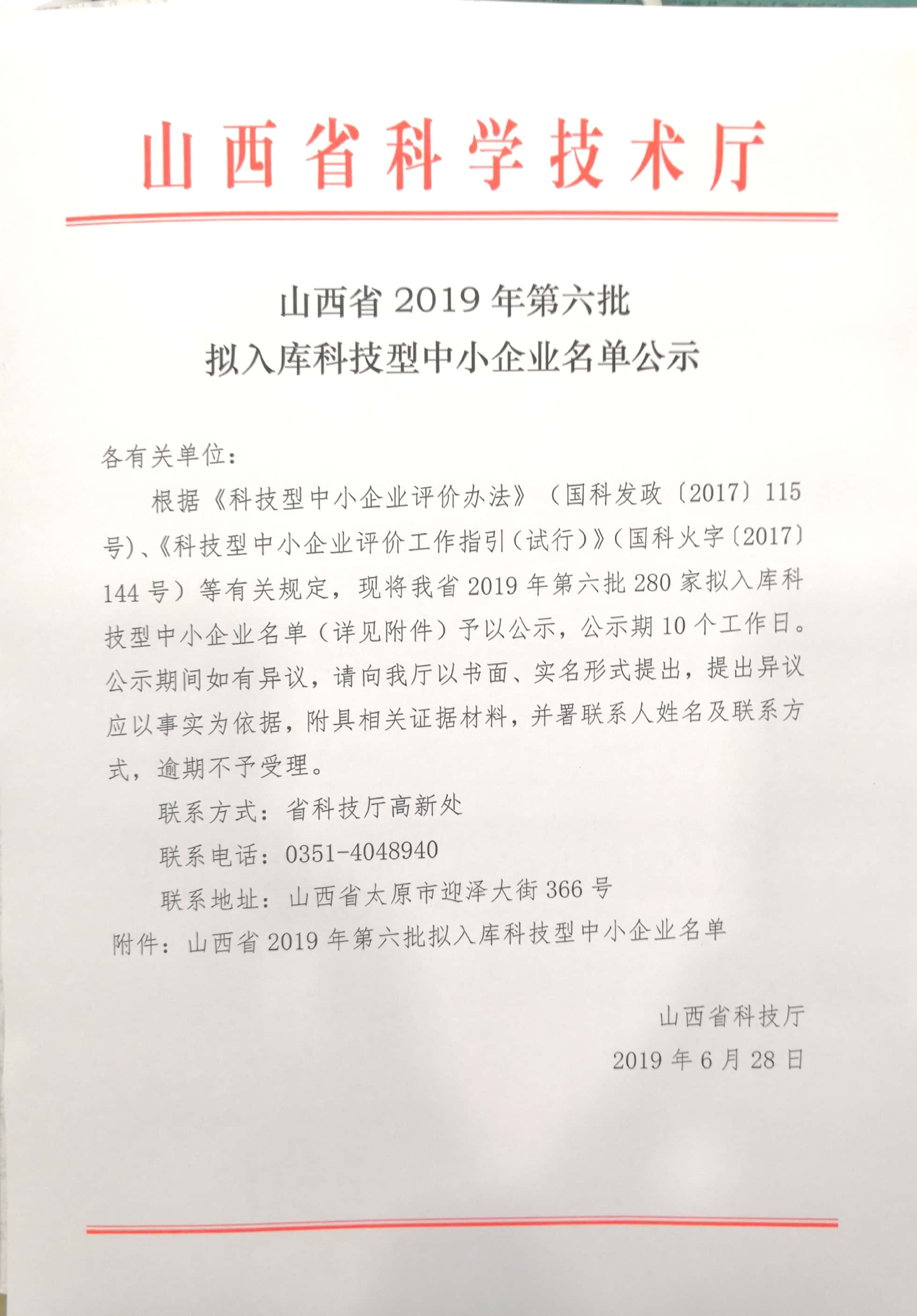山西省2019年第六批拟入库科技型中小企业名单公示正文.jpg PICTURE