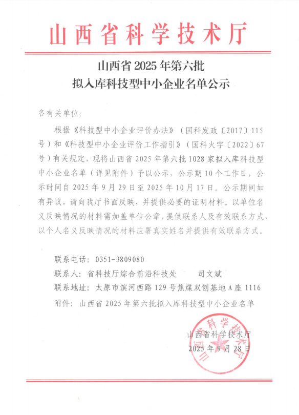 山西省2025年第6批拟入库科技型中小企业名单公示正文.jpg PICTURE