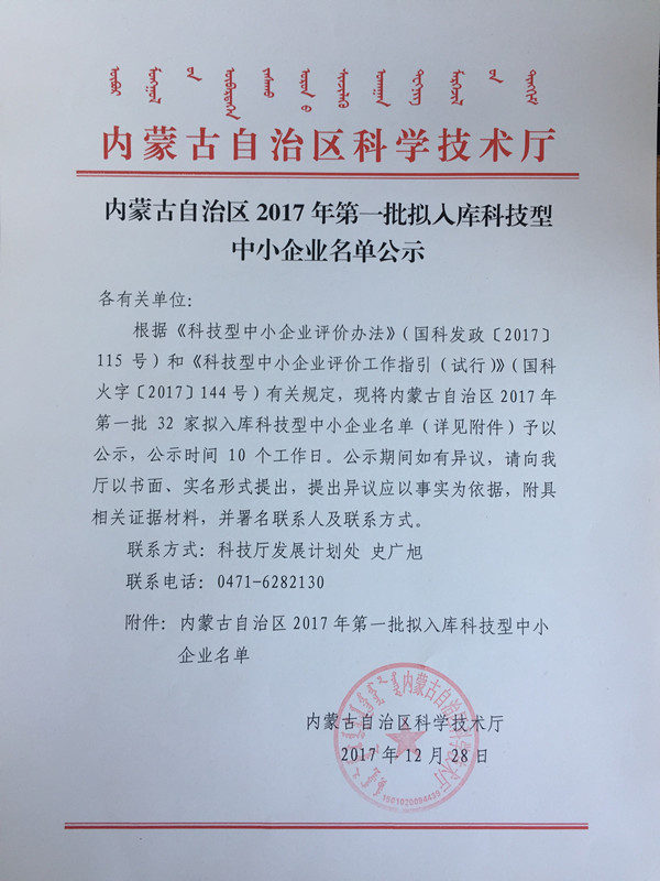 内蒙古自治区2017年第一批拟入库科技型中小企业名单公示正文.jpg PICTURE