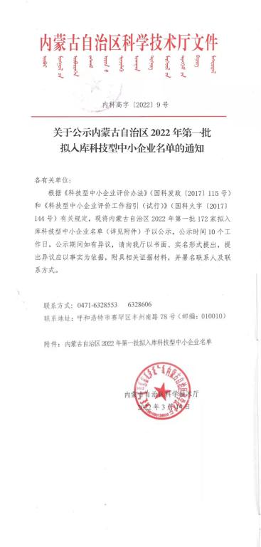 内蒙古自治区2022年第1批拟入库科技型中小企业名单公示正文.jpg PICTURE