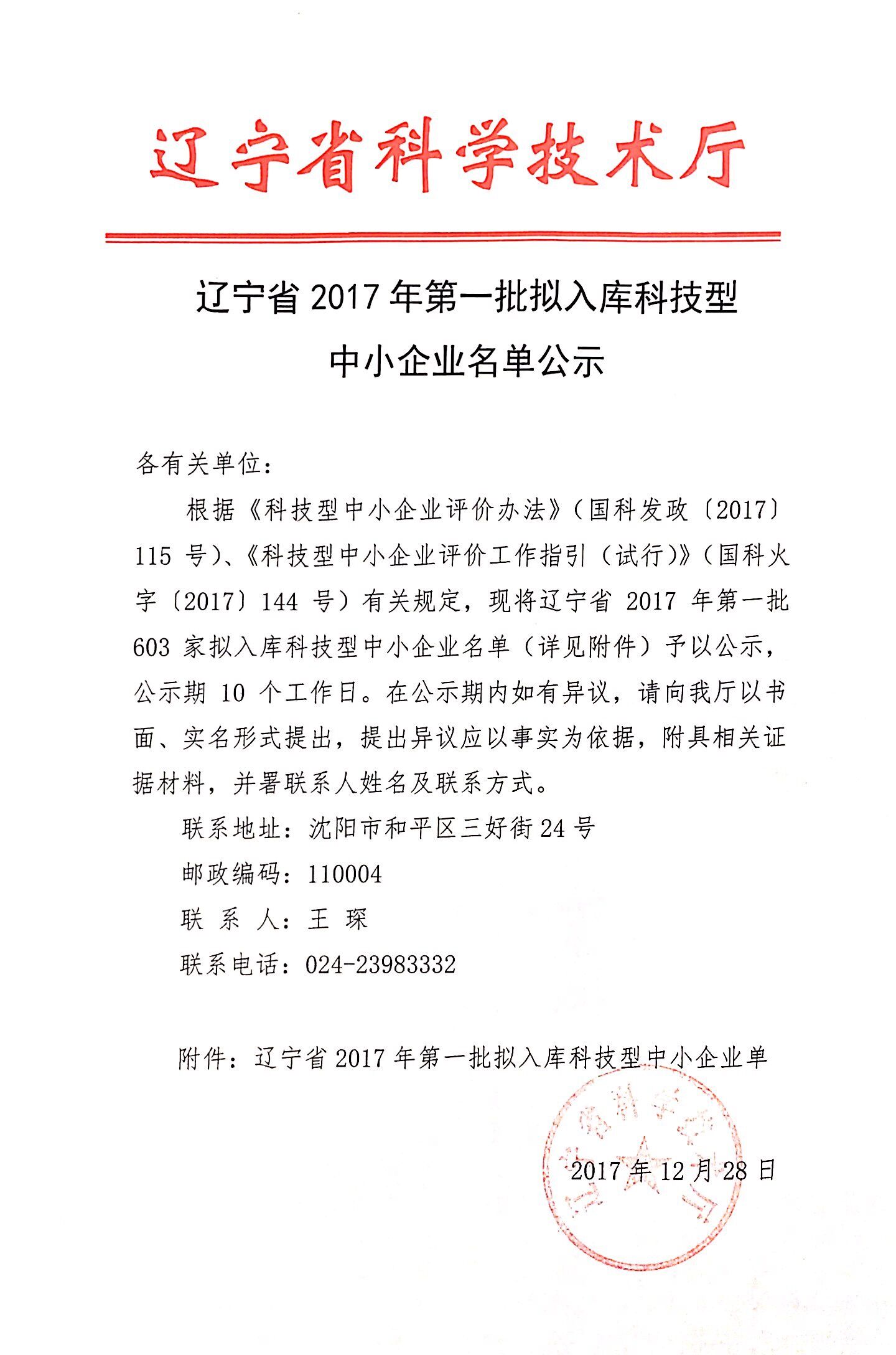 辽宁省2017年第一批拟入库科技型中小企业名单公示正文.jpg PICTURE