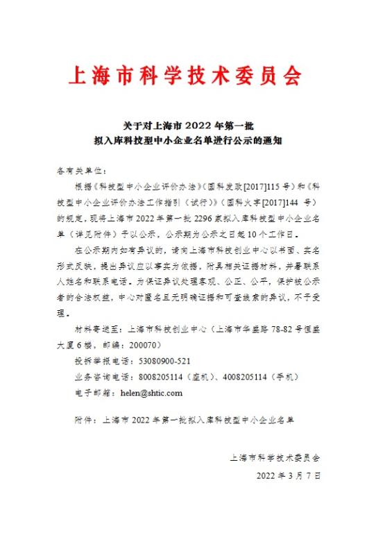 上海市2022年第1批拟入库科技型中小企业名单公示正文.jpg PICTURE