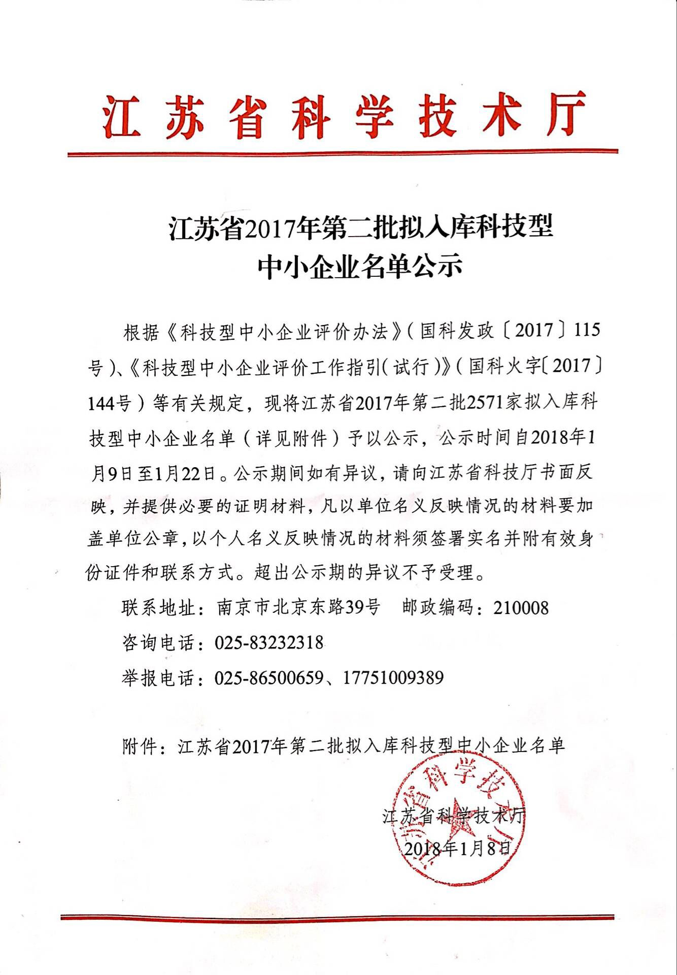 江苏省2017年第二批拟入库科技型中小企业名单公示正文.jpg PICTURE