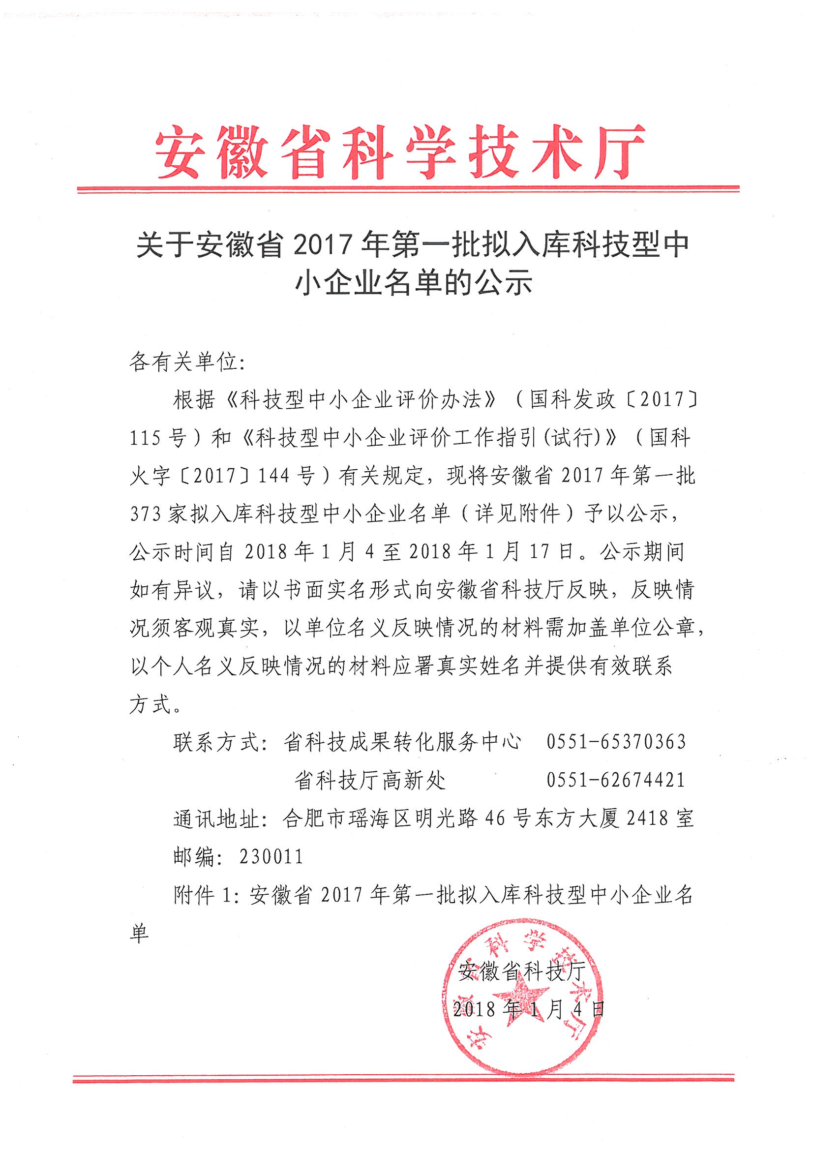 安徽省2017年第一批拟入库科技型中小企业名单公示正文.jpg PICTURE