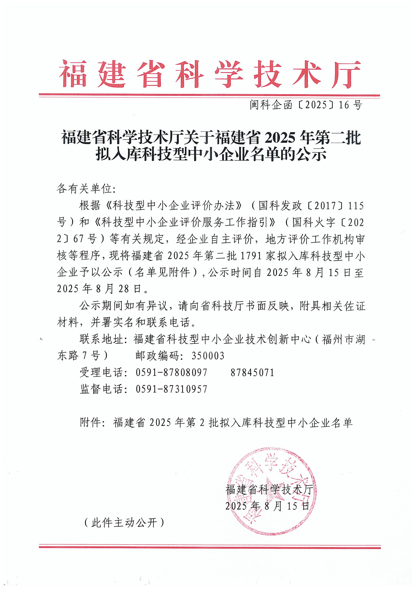 福建省2025年第2批拟入库科技型中小企业名单公示正文.jpg PICTURE