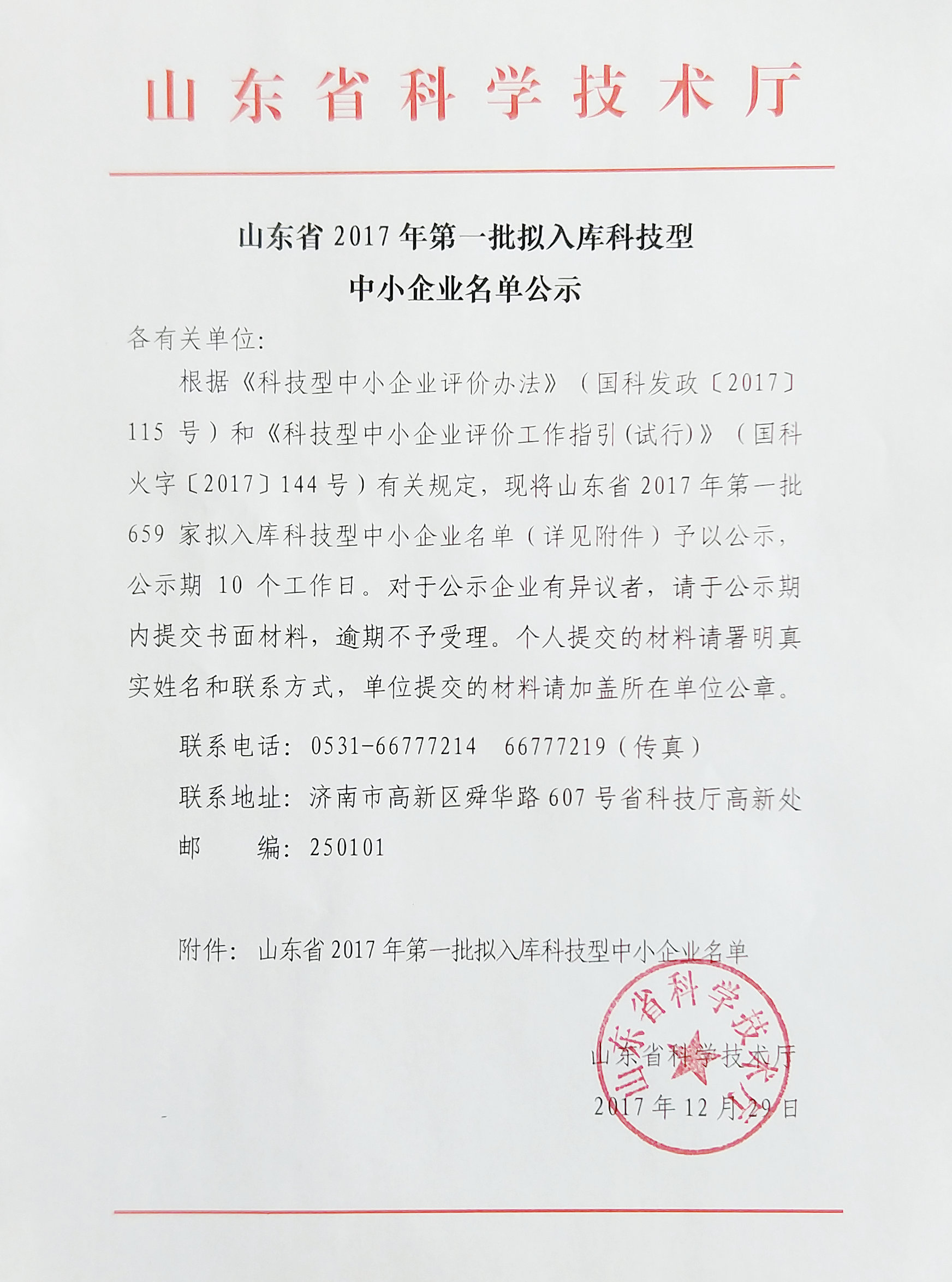 山东省2017年第一批拟入库科技型中小企业名单公示正文.jpg PICTURE