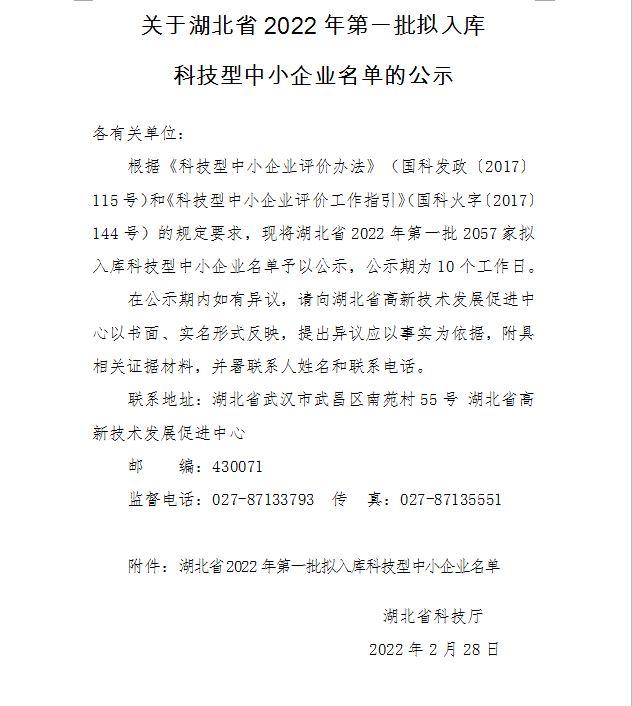 湖北省2022年第1批拟入库科技型中小企业名单公示正文.jpg PICTURE