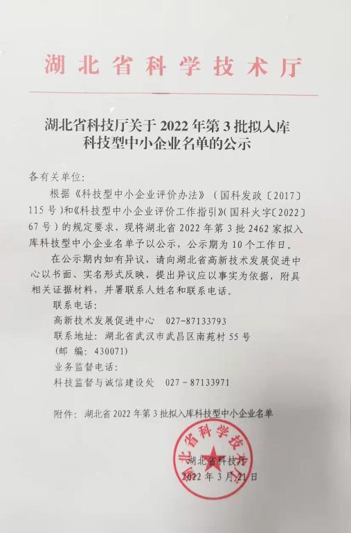 湖北省2022年第3批拟入库科技型中小企业名单公示正文.jpg PICTURE