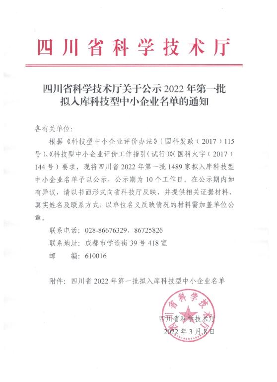 四川省2022年第1批拟入库科技型中小企业名单公示正文.jpg PICTURE