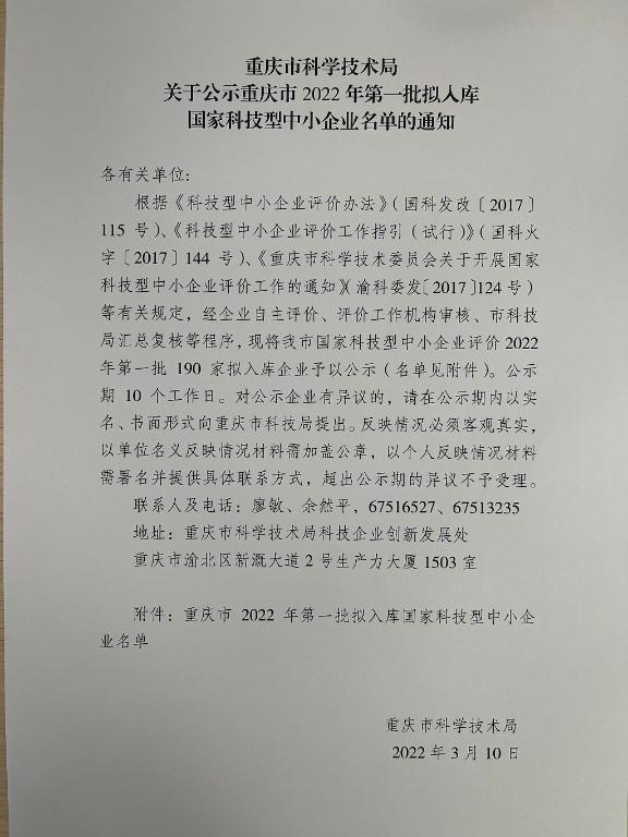 重庆市2022年第1批拟入库科技型中小企业名单公示正文.jpg PICTURE