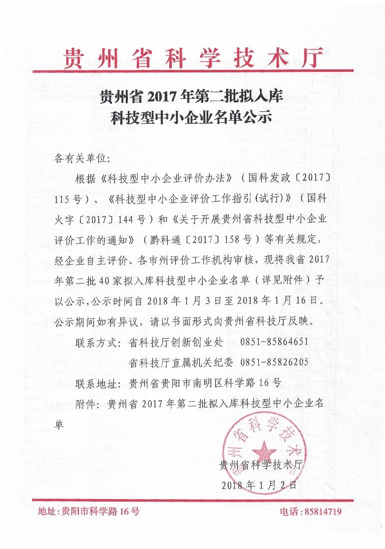 贵州省2017年第二批拟入库科技型中小企业名单公示正文.jpg PICTURE