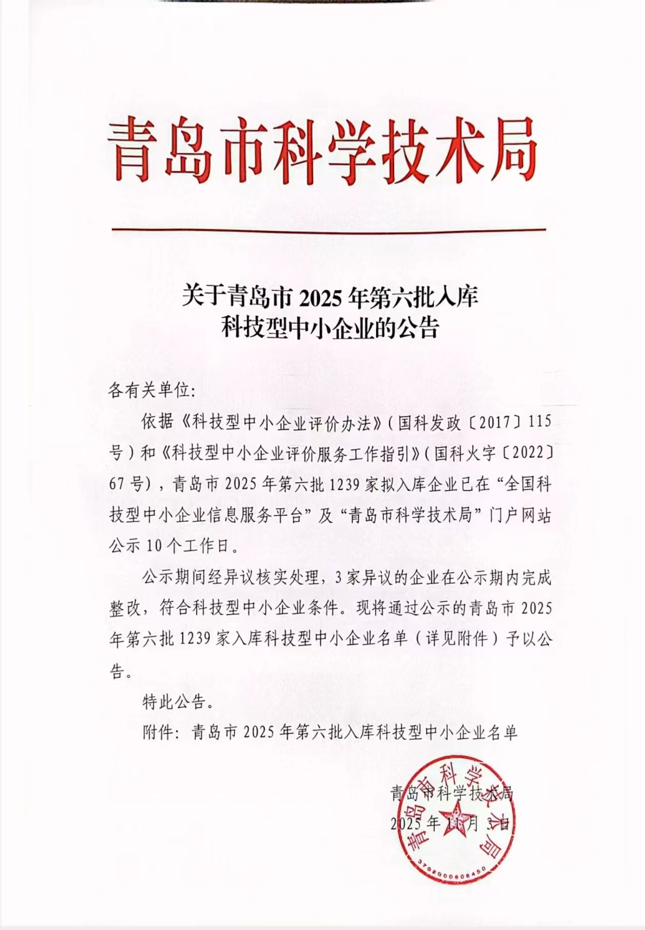 青岛市2025年第6批入库科技型中小企业名单公告正文.jpg PICTURE