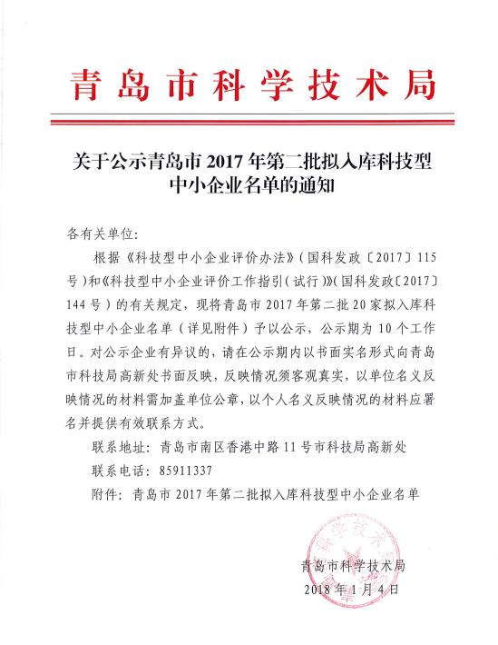 青岛市2017年第二批拟入库科技型中小企业名单公示正文.jpg PICTURE