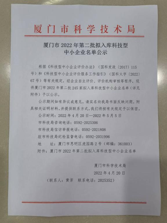 厦门市2022年第2批拟入库科技型中小企业名单公示正文.jpg PICTURE